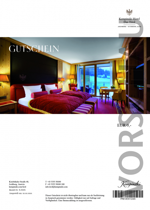 Verwöhnen Sie Ihre Liebsten mit einem Wertgutschein vom Kempinski Hotel Das Tirol.